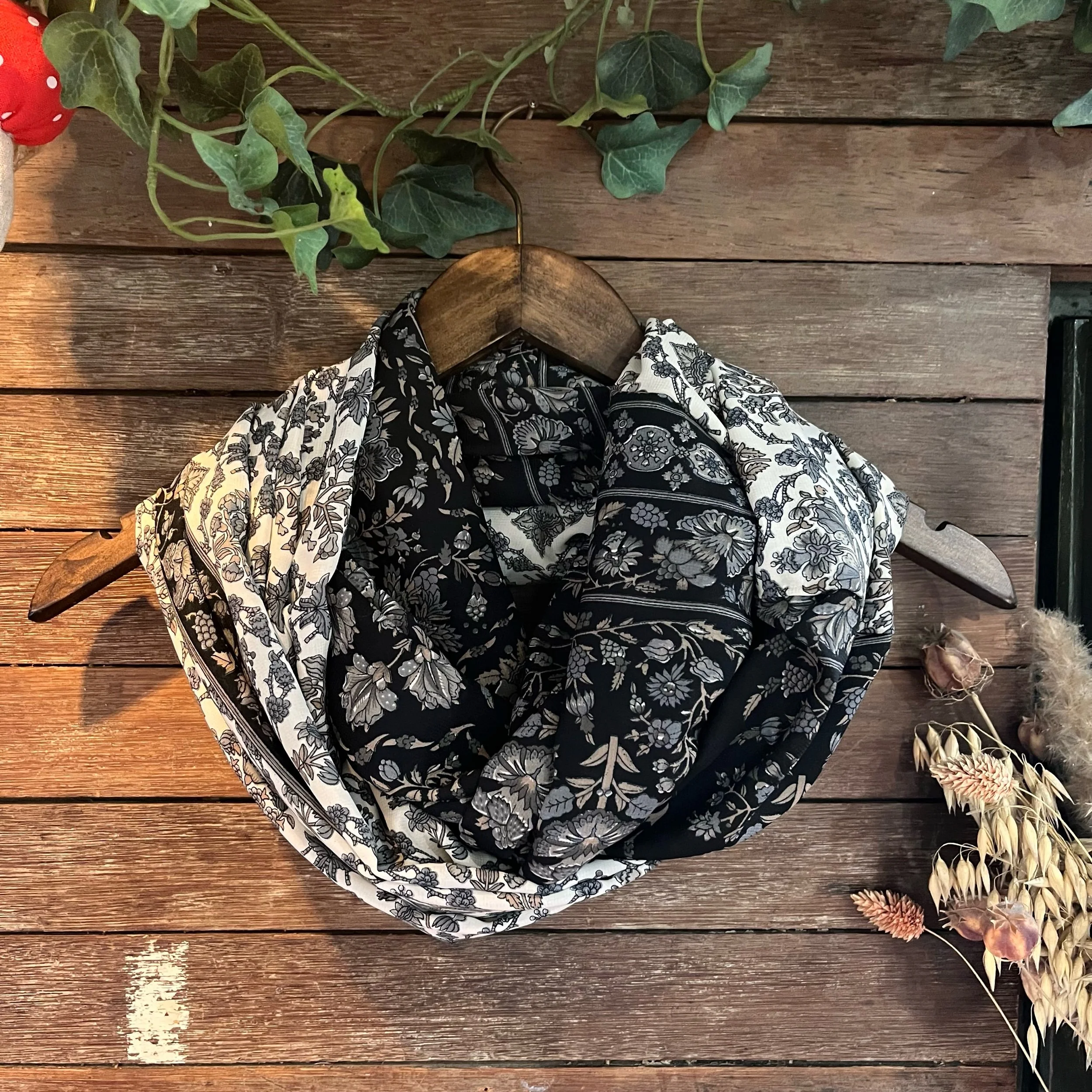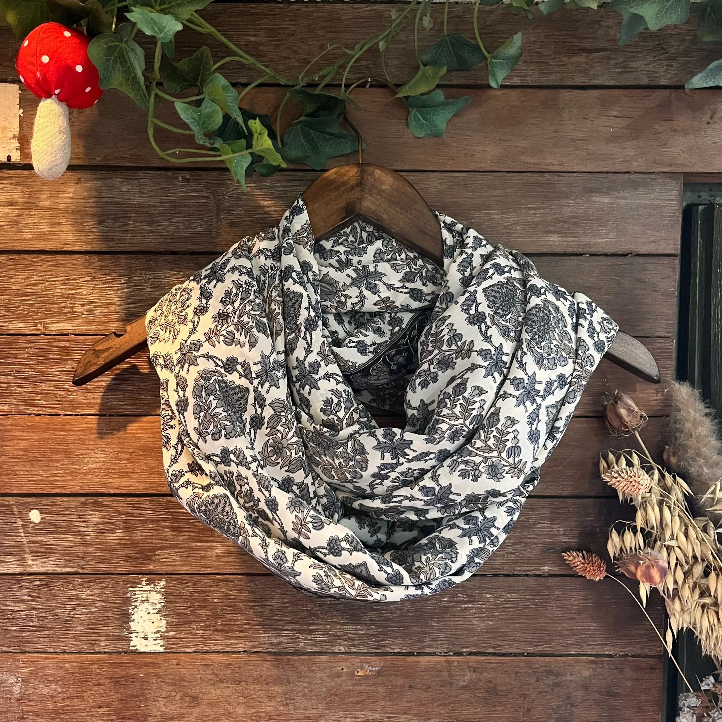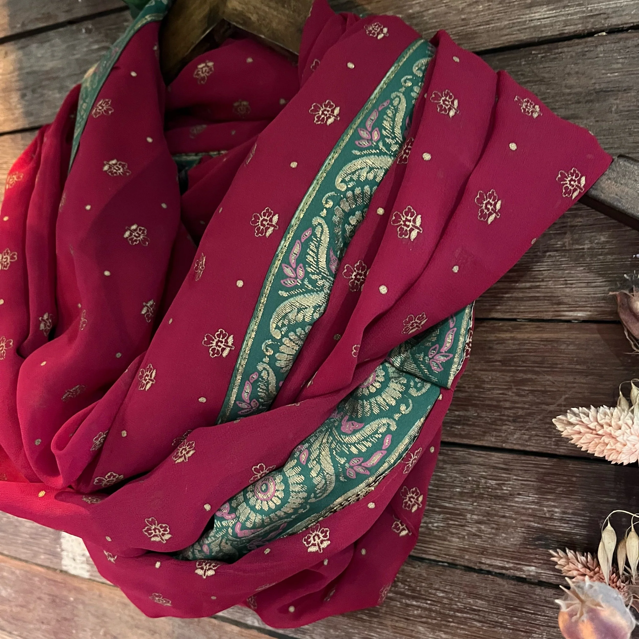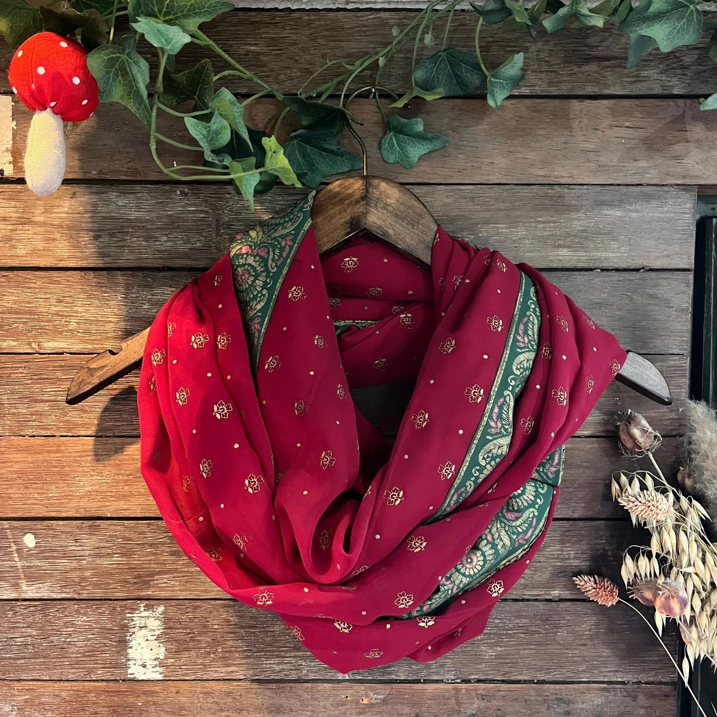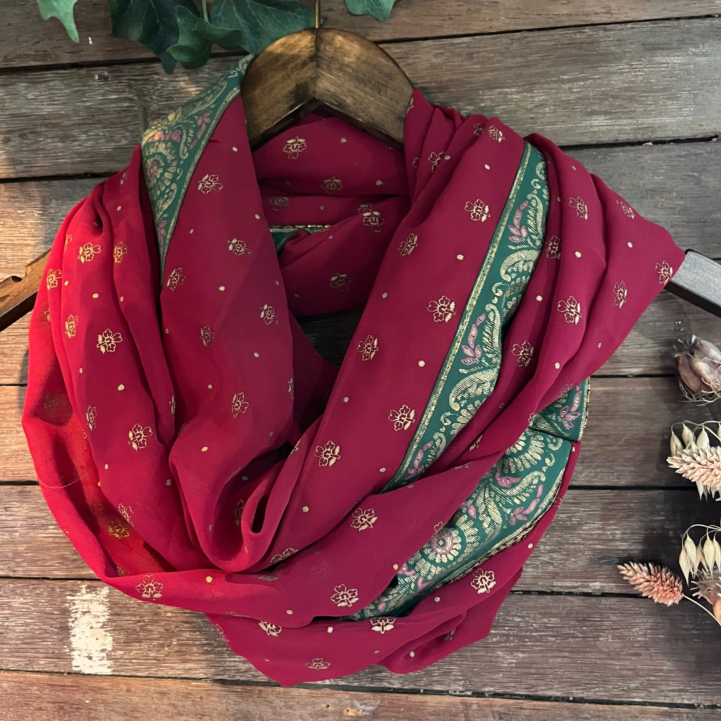 snood scarf ~ handmade on our narrowboat from recycled sari