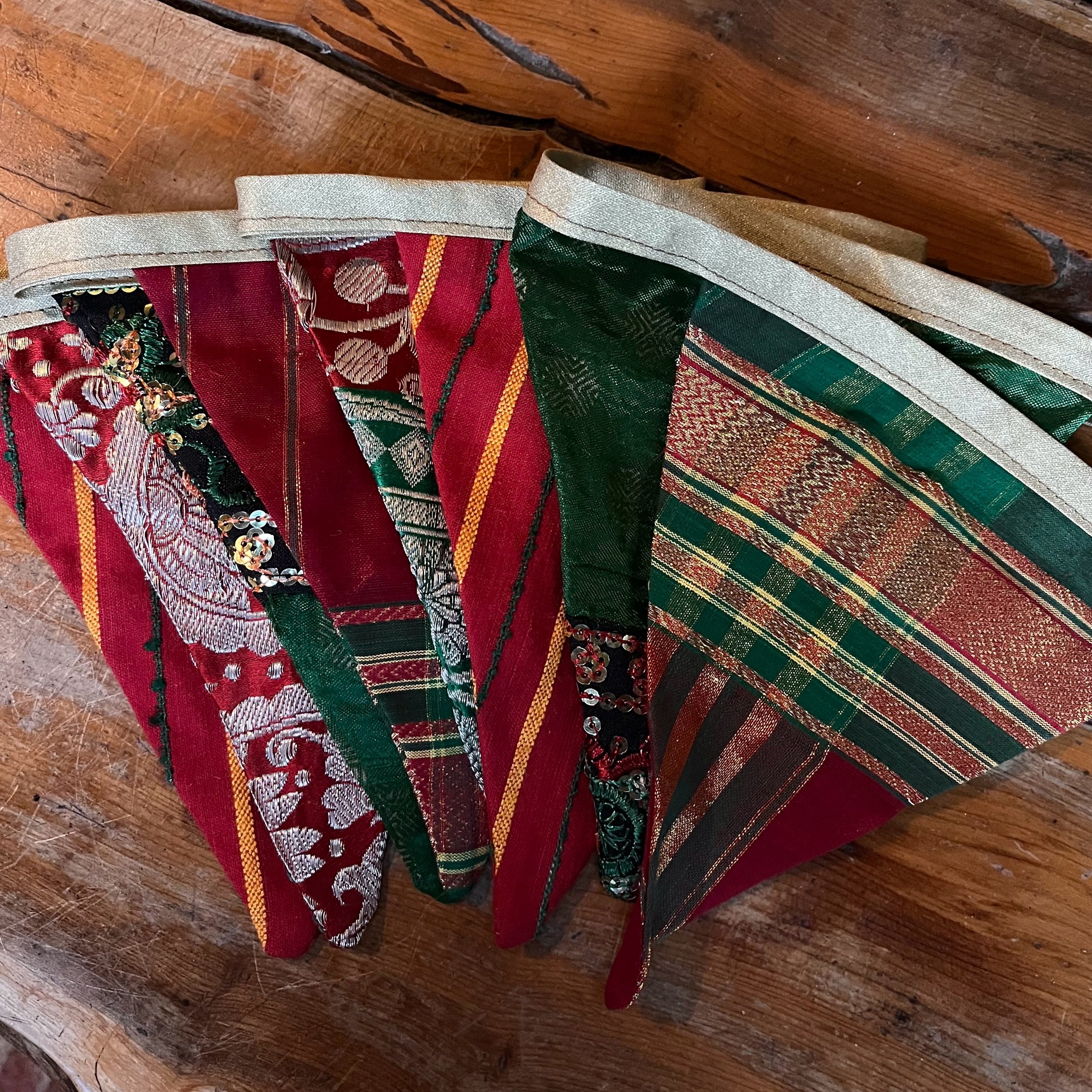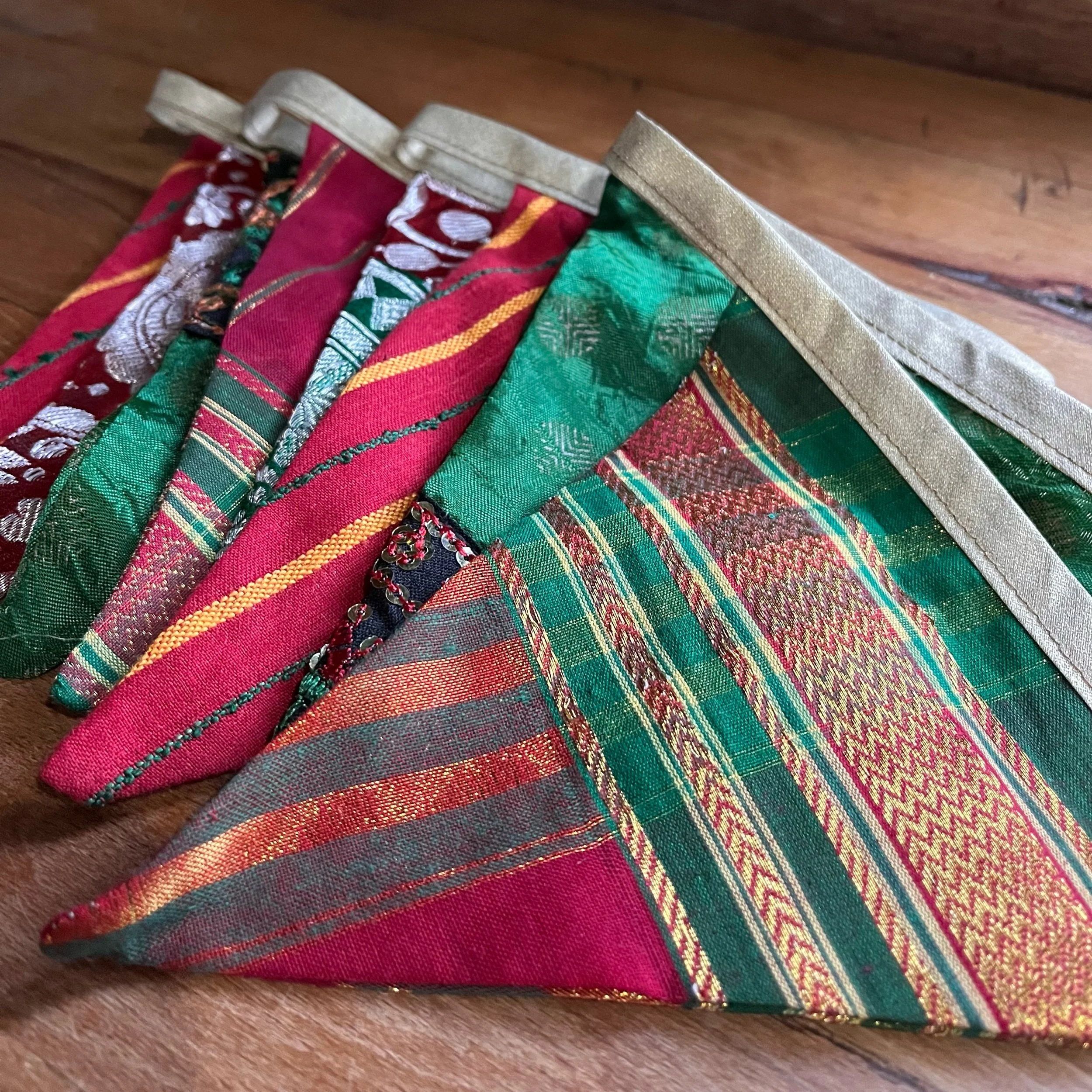 made from recycled sari’s in beautiful Yuletide colours!